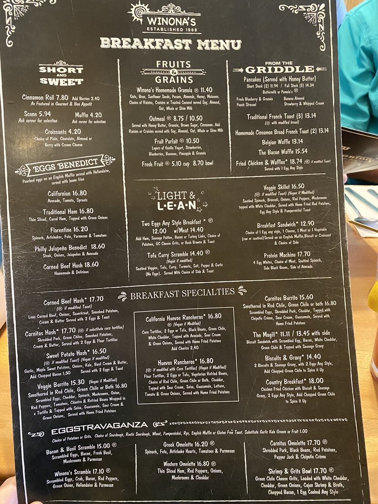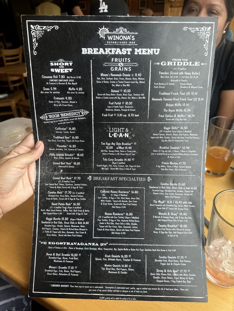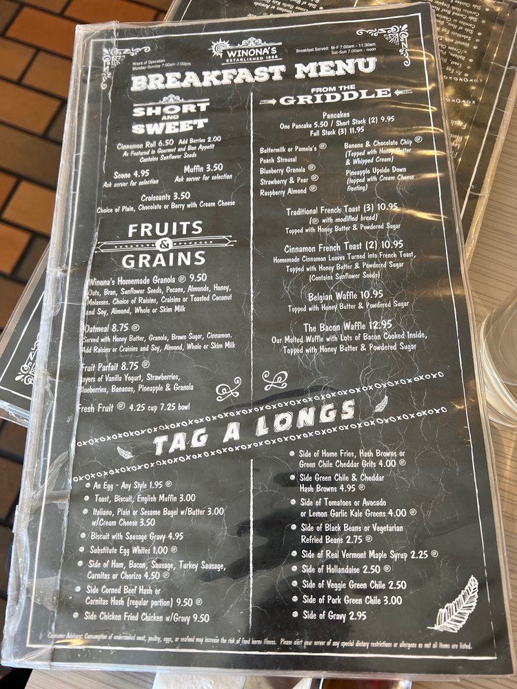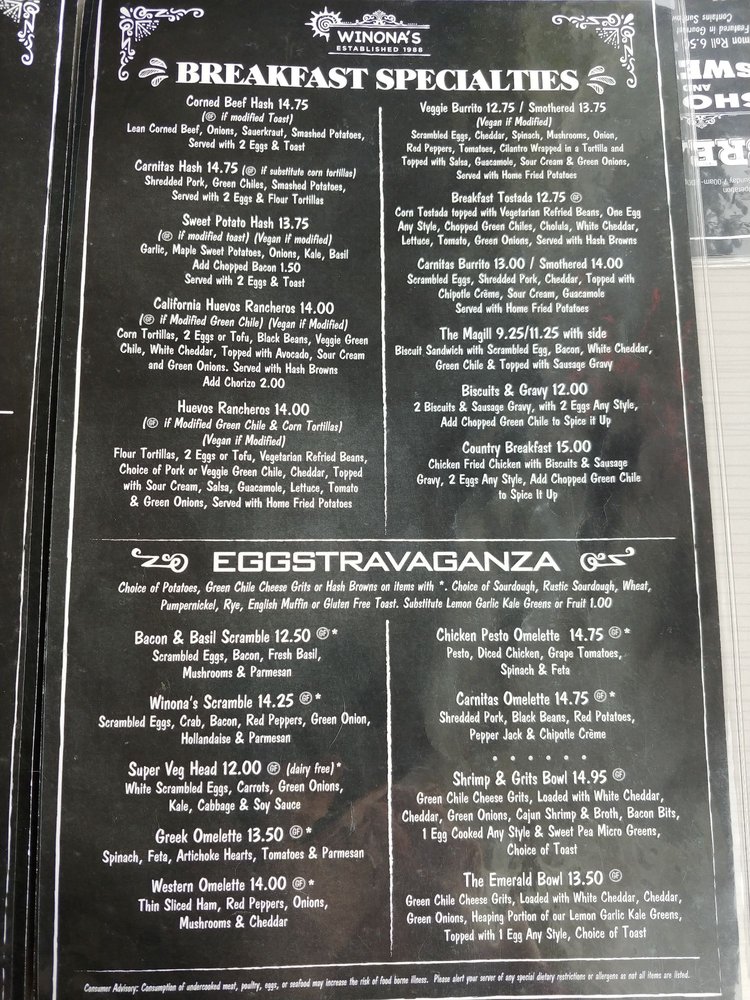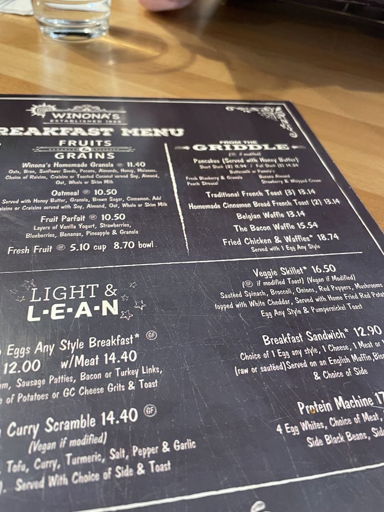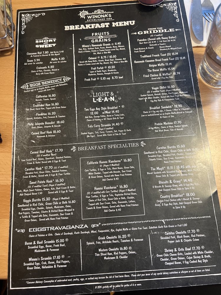 Winona's Restaurant and Bakery Menu (2025 Update)